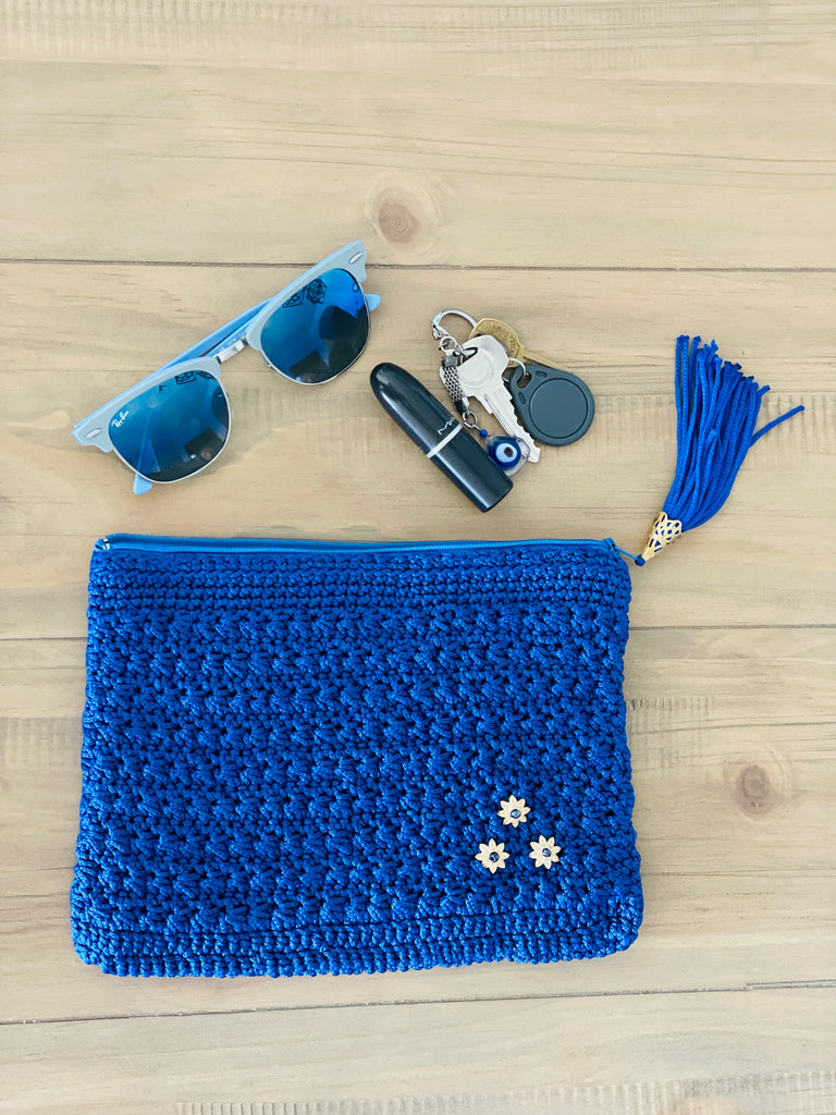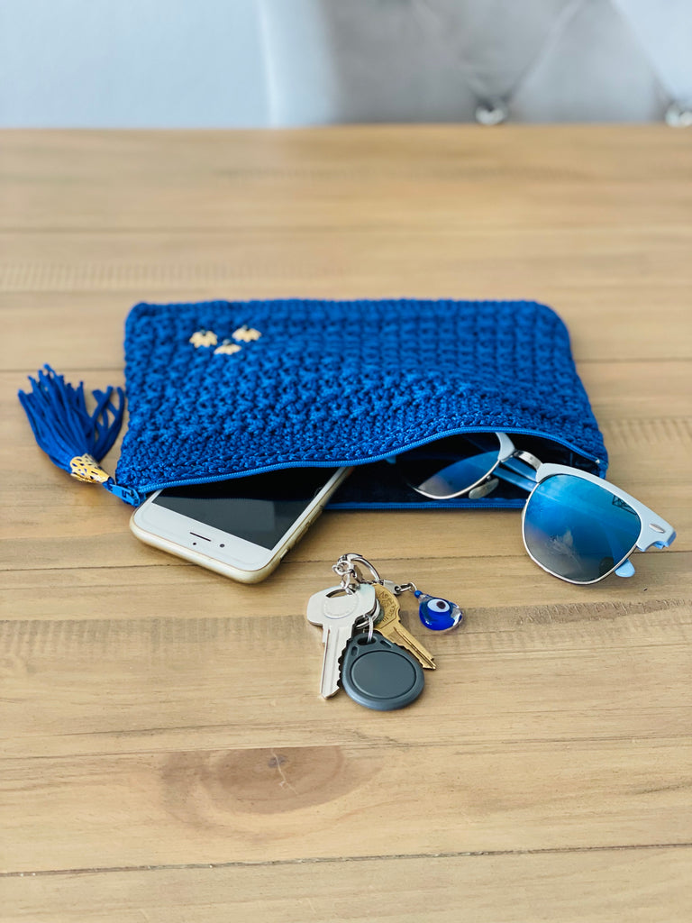 - Elegant handmade navy blue/ midnight blue evening clutch/purse with golden accents
